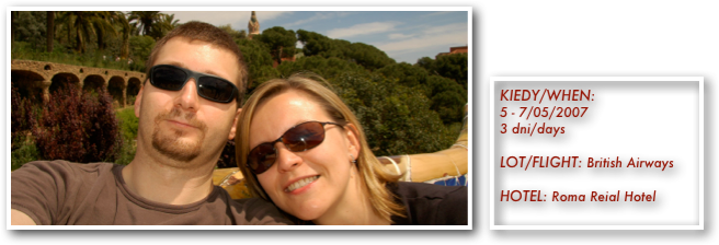 Kolejny majowy weekend z wolnym poniedziałkiem i wybraliśmy się do Barcelony. Hotel zarezerwowałam jakoś 5 miesięcy wcześniej i zapłaciłam całośc podczas rezerwacji. Hotel który zarezerwowałam nazywał się Hotel Comercio, niedaleko popularnej ulicy Las Ramblas. Jak dotarliśmy na miejsce powiedziano nam że nie mają miejsc (?!) i że mają miejsce dla nas w Hotel Roma Reial (oba hotele to ten sam właściciel i są stosunkowo blisko siebie). Trochę nam się to nie spodobało ale ok, przyjęliśmy do wiadomości i poszliśmy do tego drugiego - Hotel Roma Reial. Hotel znajduje się na Placa Reial, ciekawe miejsce więc lokalizacja nam odpowiadała. I jeśli chodzi o hotel to jedynie lokalizacja była super. Problemem okazał się pokój... to że mały to nie był wielki problem. Pokój miał niewielkie okno które wychodziło na, hmmm, coś w rodzaju szybu czyli ściany z 3 stron i od góry szyba więc nawet nie było wlotu świeżego powietrza, o widokach nie wspomne. Poporosiliśmy o zmianę pokoju ale w recepcji powiedzieli, że nie mają nic wolnego i że jutro będą mieli. Jako że w sumie byliśmy tam na 2 noclegi, stwierdziliśmy że nie ma sensu przenosić się na jedną noc i jakoś przecierpimy... ;) Większość pobytu i tak spędzaliśmy poza hotelem. Jeszcze muszę wspomnieć śniadanie bo było to najgorsze kontynentalne śniadanie jakie kiedykolwiek jadłam: tosty i dżem. A raczej sok, bo w jednorazówkach z ‘dżemem’ po otwarciu okazało się że zawartośc bardziej przypomina sok niż dżem, i koło dżemu to nawet nie stało...