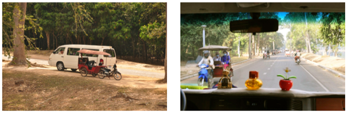 Kompleks świątyń Angkor znajduje się na tak dużej powierzchni (ponad 400km2), że potrzeba około tygodnia aby zobaczyć dokładnie wszystkie, zwiedzając od rana do wieczora. My z uwagi na to, że nie jesteśmy zbyt wybredni i mamy małe dziecię (niespełna roczne), skupiliśmy się na najważniejszych i najpopularniejszych punktach. Wykupiliśmy 3 dniowy pakiet wycieczkowy oferowany przez hotel, który zawierał 3 dni zwiedzania busem a w tym 3 obiady, 2 kolacje, butelki z wodą do picia w dowolnych ilościach, 3 dniowa wejściówka na teren świątyń, odbiór z lotniska i odwóz na lotnisko. O nic nie musieliśmy się martwić i byliśmy tylko my sami w piątkę więc nie musieliśmy na nikogo czekać czy konsultować się, a przy małym dziecku różne nagłe sytuacje mogą wyskoczyć więc było idealnie. Takie prywatne zwiedzanie :)