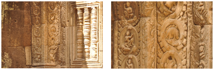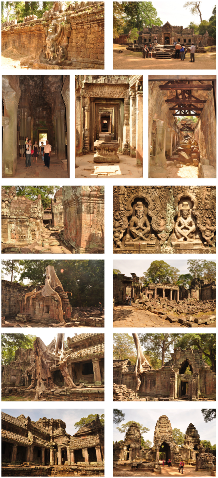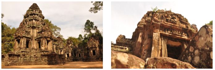 Preah Khan to kolejna świątynia, sporych rozmiarów zawierająca mnóstwo rzeźb i wiele pomieszczeń i korytarzy. Weszliśmy do niej jednym wejśćiem i przeszliśmy ją na wskroś. Po wyjściu z drugiej strony widzieliśmy kilka drzew, ktore postanowiły 'zapanować' nad świątynią wyrastając spod niej oplatając swoimi korzeniami ściany i dachy. Niektóre z drzew zostają usuwane aby zapobiec dalszemu niszczeniu budynku. Dzięki tym drzewom miejsce nabiera jeszcze ciekawszego charakteru.