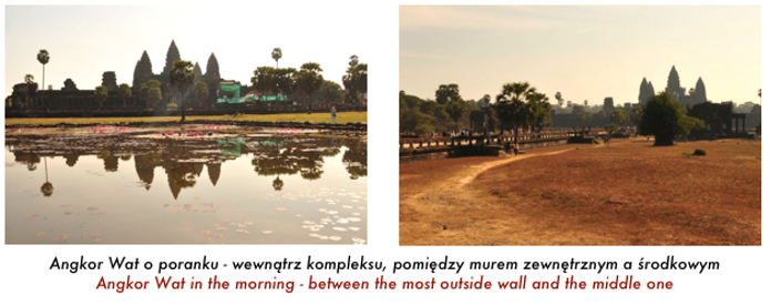 Angkor Wat rzeczywiście wygląda inaczej jako że światło zachodzącego słońca oświetla świątynię i widać więcej szczegółów i trochę w innych kolorach.