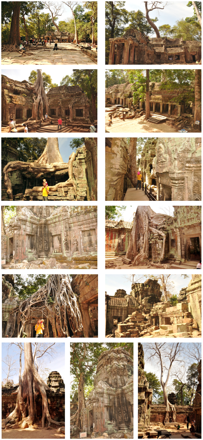 Kolejna na liście - świątynia Ta Prohm, druga najpopularniejsza po Angkor Wat. Jest to świątynia, która w obecnej postaci wygląda tak jak została odkryta. Jest tutaj masa drzew których korzenie oplatają wręcz ściany czy pomieszczenia, na zewnątrz i wewnątrz, przez co miejsce to wygląda naprwadę ciekawie i oryginalnie. Jest to też jedna z lokalizacji w filmie Tomb Rider.