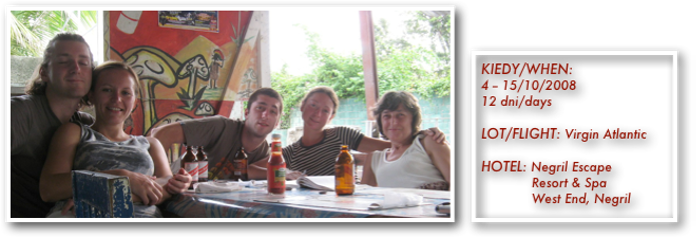Leaving Jamaica in March we somehow knew that we would be back there pretty soon. We planned our second holiday for September/October this year, and the rest of Piotr’s family decided to go with us - mummy, sister Hania and brother Tom. The holiday was sponsored by mummy, she only gave us a task to decide where we want to go. We were thinking of going to the Canary Islands (Lanzarote) but after our first visit in Jamaica we suggested the rest of the family to go there and they didn’t oppose (especially that in terms of money there wasn’t too much of a difference). Our first visit in Jamaica was successful and we liked the place a lot, so in October all five of us flew to Jamaica (second visit for me and Piotr).