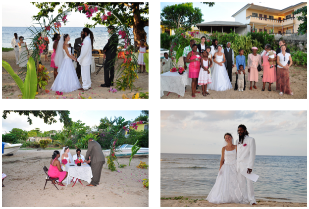 The ceremony and the party were held at a small hotel by the beach so the scenery was really beautiful. The guests were just close family and friends, maybe about 20 people together and a few kids. It was a real Jamaican wedding with a Jamaican atmosphere and it was very chilled out. We had a really nice time.