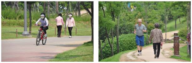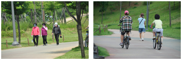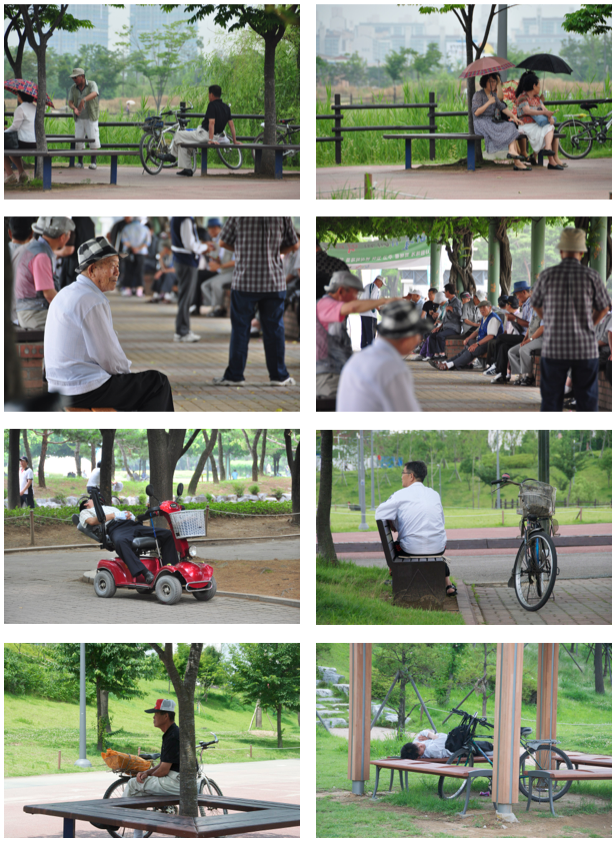 People I see in the parks, mainly run, exercise, walk, ride bikes or roller skate. There are a lot of them just sitting and resting. And it all happens during the day on a weekday. Those exercising or riding bikes, are usually dressed tip to toes, covered heads and faces, wearing long sleeves, and gloves. It’s a protection from the sun, even when it is cloudy.