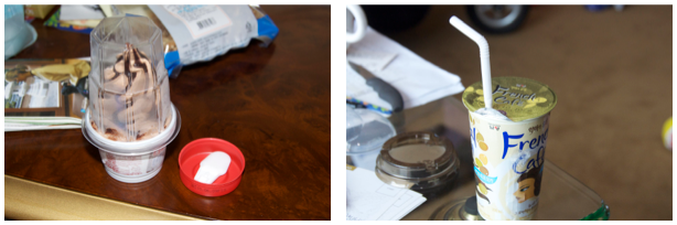 Wszelkie napoje (soki, zimna kawa) w kartonikach czy kubkach plastikowych, mają słomkę która teleskopowo się wydłuża na tyle żeby można byłó wypić napój do samego końca :)