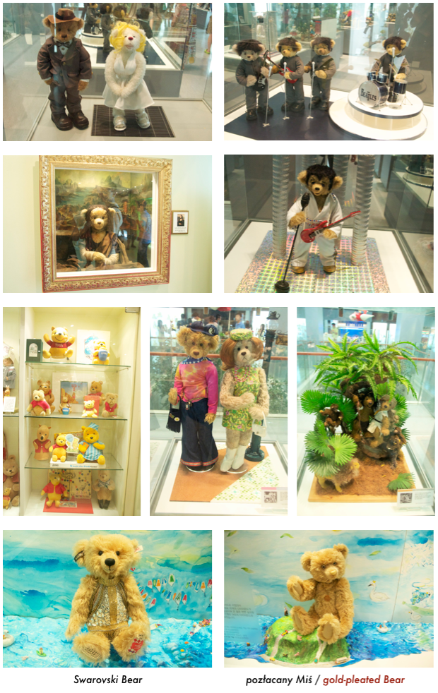 Ciekawe były również gabloty z misiami, od najstarszych po najmłodsze, wystawione w zależności od tego z którego roku pochodziły.