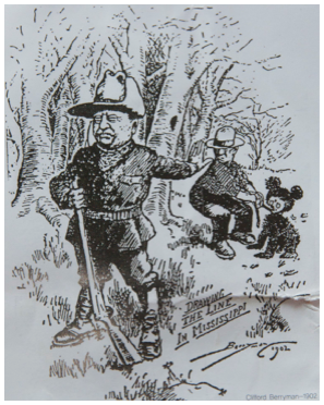 Teddy Bear was named after Theodore Roosvelt, the 26th President of the USA. In 1902 President Roosevelt was bear-hunting in the state of Mississippi. He failed to shoot any game that day, so members of the hunting paty brought a small bear cub for him. He refused to shoot a defenceless cub and had it released. Clifford Berryman drew a cartoon of the scene and published it in The Washington Post, highlighting the President’s spirit of fair play.