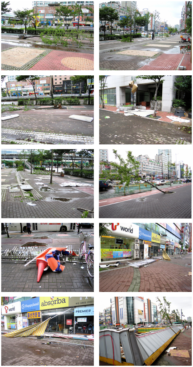 Meteorolodzy mówią że Kompasu to najsilniejszy tajfun który uderzył w Seul i okolice od 15 lat. Kompasu osiągnął prędkość około 30 m/sek.