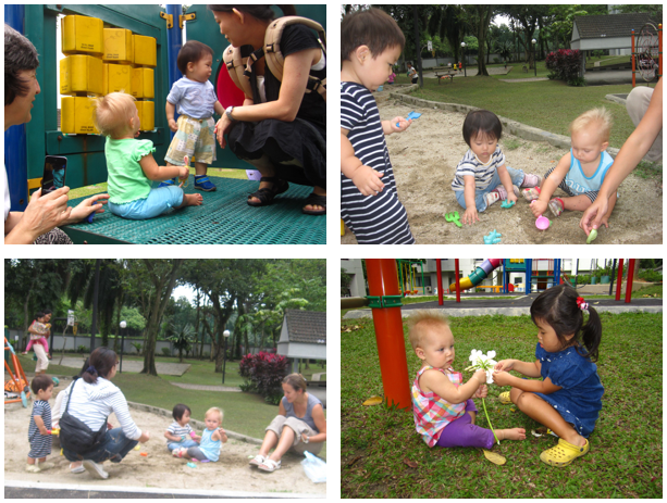What I also noticed mums meet in the local cafe very often (in the morning and in the afternoon). I don’ even think of joining them ;) Some mums of the older kids meet up in the downstairs hall of our block - they sit and chat (I think) while the kids run around the playground.